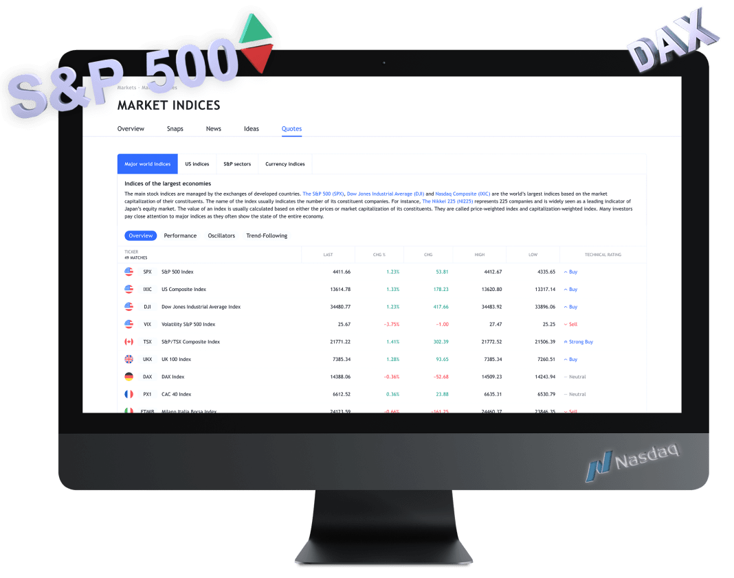 With indices, you can access the global markets and benefit from multiple opportunities.